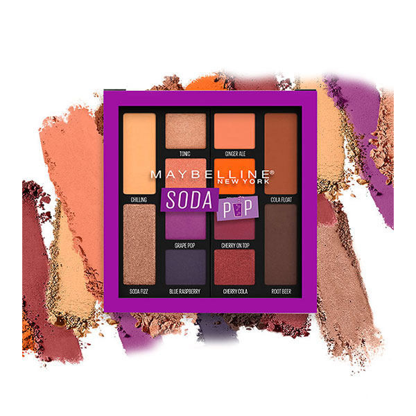 پالت سایهی چشم سودا پاپ Soda Pop از برند «میبلین»دارای دوازده رنگ متفاوت و جذاب است که برای سلیقهها و آرایشهای مختلف قابلیت استفاده دارد. رنگ های این پالت از کرم خنثی تا رنگ های قهوه ای اسموکی تا سرمه ای، بنفش متغیر است.بافت پودری پالت سایه سودا پاپ بسیار نرم و لطیف است و حساسیتی برای چشم و پوست بسیار حساس پلک ایجاد نمیکند. سایه های این پالت جذاب دارای رایحه ی خوش میوه ها هستند و با نام ان ها نامگذاری شده اند. این پالت هم برای آرایش های روزانه و هم آرایش های اسموکی و فانتزی کاربرد دارد.